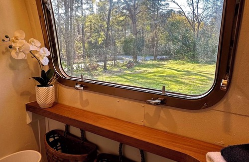 Slow down and enjoy a luxurious stay in this completely renovated 1972 Airstream Land Yacht Ambassador. Enjoy brand new fixtures and furniture including residential plumbing, stunning finishes, comfortable floor plan and luscious linens. Or find a comfy spot outside on the huge covered porch furnished with plenty of cozy places to curl up. Enjoy this oasis in the middle of town near Lake Murray.