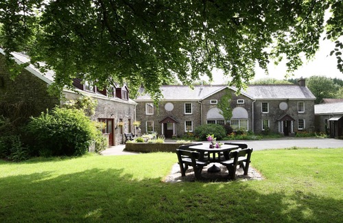 Romantics love the four poster bed, log fire, and fairytale setting on the bank of a mountain river. Families love having the freedom of extensive private grounds including a bluebell woodland and hillside areas with panoramic views. This Georgian coach house overlooks an old estate courtyard, a lawn area with picnic table and extensive parkland. Guests love to sit with a glass of wine and watch the animals as the sun sets over the Welsh countryside.