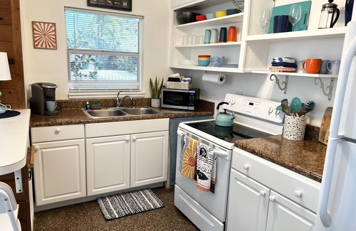 You will love this adorable 1B/1B cottage located two short blocks away from the beach, bars, restaurants and shops. The open floor planfeatures terrazzo flooring throughout for easy clean up after a long day at the beach! The living room has a futon and large flat screen TV. The bedroom has a king bed with large closet and bathroom has a tub/shower combo! We manage two units side by side, perfect for couples or small families that want to travel together but have their own space. Each unit is equipped to sleep two adults and one to two small children on the futon sleeper.