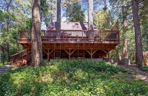 Find the perfect year-round Crestline getaway at this whimsical cabin tucked within the tall pines! Ideal for couples, small families, and fur babies (MAX 2 dogs w/ fee), this cabin offers fresh mountain air. Enjoy wildlife from the beautiful deck. The additional loft with a privacy curtain provides extra room for relaxation. With two mini splits for AC and heat located upstairs and downstairs, you'll stay cozy year-round in this comfortable cabin.