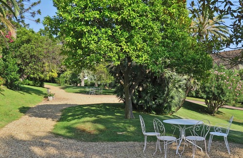 A character 1st floor Cannes apartment within magnificent building and grounds close to the centre. Ideal for couples. Views from the apartment over beautiful gardens to the sea beyond. A light and airy apartment. Large open plan room with modern white kitchen units, clean work spaces and breakfast bar. Free WiFi. Protected parking. Front and rear gardens with seating. Quiet and relaxing. Lovely!