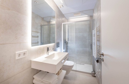 The distribution of the apartment allows you to have everything at your fingertips, while making it more welcoming and reserved. The apartment has ambient LED lighting in all areas. The living room has a double sofa bed and an integrated kitchen. Two balconies exit, one in the bedroom and one in the living room. It has a fully equipped kitchen and a modern bathroom with services that guarantee maximum comfort. The apartments are fully automated -they do not work with keys-, and at the time of booking a PIN is generated in your email and you can access it. Once inside the apartment you can activate a Contactless key.