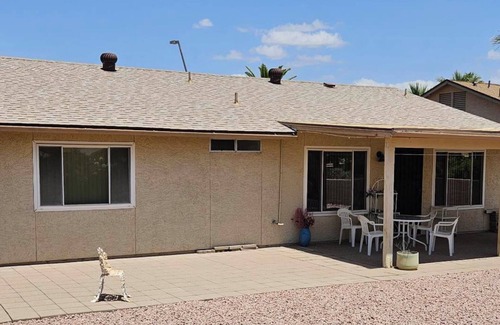 You've found your home away from home. The vibe is simple and uncluttered, in one of Mesa Arizona's premier retirement communities, Dry Dragonfly is an oasis in the desert. Golf course and distant mountain views from the back yard and everything Fountain of the Sun offers. You’ll be able to relax on the shaded patio. Morning coffee viewing the mountain sunrise and watching the golfers on the 16th green. Gather your friends for pickle ball or shuffleboard. Work out in the gym, paint your ceramics or play cards. Go hiking the Superstitions and come back for the pool and hot tub. Reservations must be for a 30-day stay at a minimum.