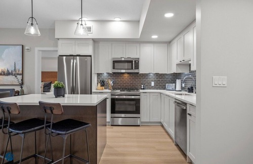 NEW RESORT -OUTDOOR POOL/HOT TUB NOW OPEN! Escape to the mountains and stay at this beautiful 2 bedroom ground floor suite for easy access. Featuring 1 king bedroom, 2 twin beds (can be made into king), queen pull out, 2 full bathrooms and laundry. Spacious open concept living area, fully stocked kitchen with large island and fireplace complete the large entertaining space. Enjoy spending time out on the patio equipped with furniture and gas BBQ .