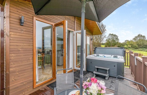 Escape to Billy Goat Lodge, with scenic views, hot tub, and ample space, a perfect combination. Two bedrooms with en-suite facilities. With in easy reach of many local attractions such a West Midlands Safari Park.. 2 steps to entrance.