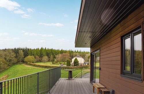A modern contemporary two-bedroom holiday destination with fabulous rural views from expansive picture windows across the raised decking external seating area. Close to Dartmoor, Alder vineyard and a lovely pub close by.. 8 steps to entrance.