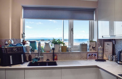 Separate toilet.. Electric central heating, electricity, bed linen, towels and Wi-Fi included. Welcome pack. Back garden with patio and garden furniture. No smoking.. With stunning views over the sea to the Isle of Arran this beautifully presented quarter villa is in the pretty harbour village of Maidens. All on the ground floor the property offers an open plan spacious lounge/kitchen/diner boasting sea views from each window and a lovely sunroom to the front to soak in the stunning sunsets of an evening. There are two welcoming bedrooms, one with ensuite shower room and the other with patio doors to a lovely seating area. A cloakroom and utility complete the accommodation.