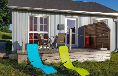 The 3 Scandinavian cottages are furnished with attention to detail and offer a good opportunity for your vacation with several families or friends( other objects DER141 and DER143). Via the wooden deck in front of the house you enter the spacious and light-flooded 20sqm living and dining area. Here you will find a fully equipped fitted kitchen with dining area and a comfortable rest area with couch and armchair. Already when entering the terrace, you will be captivated by the view and the charm of the landscape.