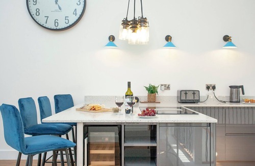 Kitchen area: Electric Oven, Electric Hob, Microwave, Fridge/Freezer, Dishwasher, Washing Machine, French Doors Leading To Balcony. Air source heat pump central heating, electricity, bed linen, towels and Wi-Fi included. Travel cot, highchair and stairgates available on request. Welcome pack. Balcony. Garden with patio and garden furniture. Enclosed front garden with sitting-out area, garden furniture and barbecue. Hot tub for 4 (private). One well behaved dog welcome. Bike racks. Electric car charging point (shared with other properties on-site, at cost). Private parking for 2 cars. No smoking.. Nestled at the foot of the Quantock Hills (England’s first designated Area of Outstanding Natural Beauty), Bincombe Country Cottages are located outside the small hamlet of Over Stowey near Bridgwater in Somerset. The site comprises of four luxurious holiday homes newly built in 2021; two end terrace three-bedroom properties and two mid-terrace two-bedroom properties. These exceptionally stylish terraced properties are ideally located for enjoying superb walking in the peaceful countryside of the Quantock Hills and they each showcase a private front and back garden with a hot tub, a balcony, underfloor heating throughout, free parking and reverse-style living making the most of the views of the north Somerset coast in the distance and you can even see Glastonbury Tor on the horizon on a clear day.