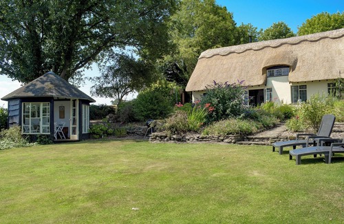 A thatched cottage set just 2½ miles from the popular town of Ludlow, offering comfortable accommodation with open plan living space.. 2 steps to entrance.
