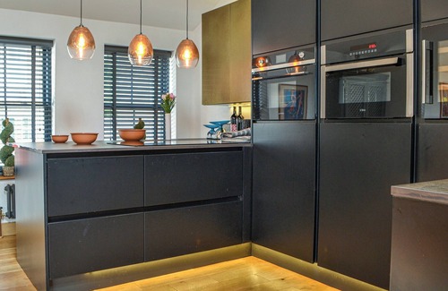 This property is ideal for couples and families, the attention to detail is evident from the moment you arrive. With high quality furniture, excellent interior design throughout and some great touches like the coffee machine, wine cooler and digital TV, you’ll soon feel at home. It also has a balcony with table and chairs, so you can enjoy a chilled glass of wine while taking in the views and a small patio with views towards the sea over neighbouring gardens, but does not have a garden. This ‘upside-down’ property has the two bedrooms on the ground floor. A good-sized double with en-suite bathroom and a twin. There is a separate shower room off the hallway too and a spacious utility room with washing machine, dryer and plenty of space to store bikes, paddle boards, and kayaks. The first floor is all open plan with a high spec kitchen and breakfast bar, hardwood flooring, large dining table and Scandinavian chairs. There’s a huge TV and plenty of comfortable easy seating. Overall, you’ll be impressed, a lot of thought has gone into delivering an excellent guest experience.
