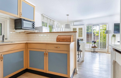 Take a seat on the covered terrace with cosy seating area and wood-burning stove. Start the day with breakfast outdoors or spend a relaxing afternoon in the hot tub. The garden has been lovingly landscaped and offers plenty of privacy thanks to the hedges and trees. Use the barbecue or relax on the sun loungers provided.