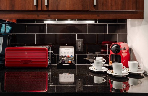 A living room, a dining area, a BBQ grill, and a fireplace are featured at this 2-bedroom, 1-bathroom rental. Bathroom amenities include a hair dryer and towels. Prepare a home-cooked meal in the kitchen, complete with an oven, a stovetop, and a refrigerator, as well as a coffee maker, a microwave, and cookware. And you can even pack a bit lighter because there's a washer and dryer.