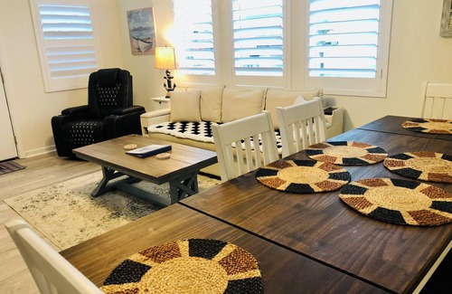 This 2-bedroom first floor unit is a brand-new remodel with new furniture and appliances. It offers great ocean views and is only a few steps from the public beach access. During your stay with us, you'll have access to beach chairs, an outdoor shower to rinse the sand off, a fire pit and seating in the backyard and a BBQ grill. This unit has a well-appointed and modern kitchen, a washer and dryer closet for your convenience, iron and iron board.