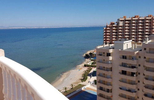 Magnificent apartment on the 9th floor with private solarium on the 10th floor on the almost island of LA MANGA DEL MAR MENOR and the Mediterranean Sea with 2 bedrooms, Panoramic view of the MANGA basin and the Mediterranean Sea in 360 degrees !!! 2 bathrooms, free high speed wi-fi, air conditioning, private parking, condominium swimming pool in summer. Shops and restaurants nearby +++++ .The Manga basin is at the foot of the building and the sea at 200 m. Sheets provided