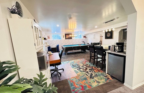 Beautiful, completely private with separate entrance, this cosy basement suite offers games to enjoy with the family such as a pool table, darts, and much more. After a tired day, make dinner using the full kitchen and the whole family can relax on the comfortable sofa set to watch Netflix. In the morning, go for walks around the quiet neighborhood and enjoy breathtaking views from above the hill. It is just 15 mins drive to downtown Calgary, 10 mins to Winsport and just 45 mins drive to Banff.