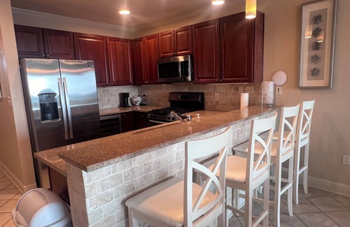 Your beach getaway awaits in Orange Beach at the Wharf Entertainment District. With 2 bedrooms featuring a king and 2 queen beds, 2 bathrooms with a jetted bathtub & showers and a roomy living room with a sofa bed, this space is perfect for a small group of guests. Enjoy the convenience of amenities like a hair dryer, fitness room, and balcony during your stay.