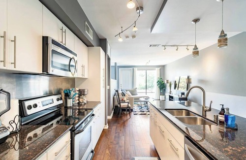Welcome to this exquisitely modern 2-bedroom, 2-bathroom retreat, offering a perfect space to unwind and recharge after a busy day of conferences, shopping, exploring Dallas, or enjoying quality time with loved ones. The open loft concept provides a serene ambiance, allowing you to truly relax and rejuvenate. In the morning, start your day with a complimentary Keurig coffee from our well-equipped kitchenette, or indulge in some extra rest on our exceptionally comfortable beds. We are confident that you will thoroughly enjoy your stay with us.