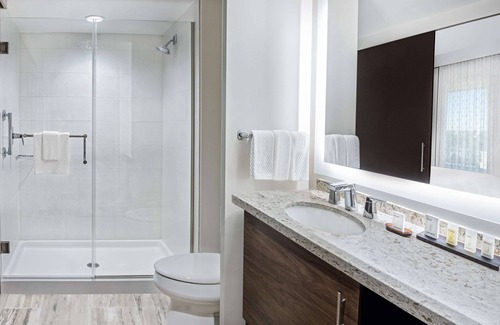 Sleek, contemporary and well-appointed, the 1 King Bed Two Room Suite at Embassy Suites by Hilton College Station is likely to suit those looking for a relaxing stay in eastern Texas. Characterized by classic tones and modern accents, this inviting suite for four boasts a spacious seating area where a handy sofa-bed and a 49-inch HDTV await. A smart work desk with comfy ergonomic chair makes catching up with work a breeze, plus there’s a neat wet bar area complete with microwave and mini-fridge. After refreshing with complimentary toiletries in the polished bathroom, retreat to your separate bedroom where a welcoming King bed beckons you to drift off with 300 thread count sheets for company. Located just across from Texas A&M University, the hotel is an ideal choice for those visiting students or visiting College Station for business. This modern all-suite hotel invites you to fuel up for the day at a complimentary breakfast with made-to-order omelets, fresh fruit, bacon, and more, and return for an evening reception in the atrium where you can enjoy complimentary appetizers and drinks. Take a break to relax in the indoor pool or visit the fitness center for a workout. Dine on-site at Saber Bar & Grill, or have their menu of casual American fare delivered right to your suite. Explore the George H.W. Bush Presidential Library and Museum, which is a ten-minute drive away, or walk to Kyle Field to catch a football game.