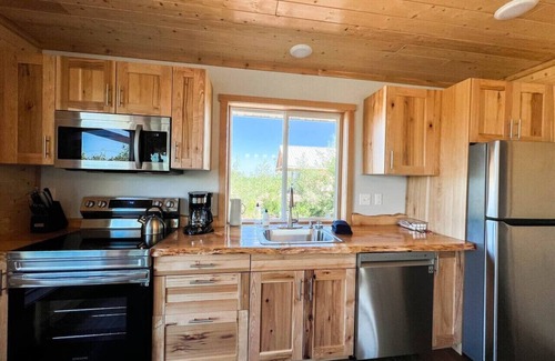 Island Overlook #2 is centered between the three identical cabins perched on a cleared hillside overlooking Lake Superior and the Apostle Islands. Panoramic views and natural light galore create a unique Bayfield vacation location that you won't soon forget. Open concept living space with a sleeper sofa and Roku TV, fully-stocked kitchen, large bathroom, and private queen bedroom with all of the modern amenities you desire!