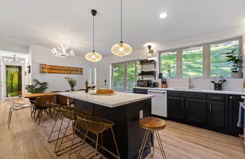 (2 Bedroom Listing on a 6 bedroom home, see "Notes") NEW BUILD HOME! Wow! Deep Creek has never seen anything like this before! It's a one-of-a-kind experience that gives you all the amenities you need for your BEST vacation/getaway/staycation ever! With it's unique combination of rustic look and modern features, it will surely delight every guest! After a fun-packed day on the lake, fishing or boating, unwind on our upper deck as you watch and hear the water lap up on the shore with a refreshing drink in hand. Or are you just getting back from an invigorating day on the slopes? Relax those muscles in our lower-deck hot tub, gazing at the stars in the winter sky above! You get the best of the lake and the mountain in this dog-friendly hidden gem! Imagine evenings enjoying the mountain breeze as you roast marshmallows in our fire pit! Or cozy up in front of the gas fireplace in our open-concept great room that allows everyone to be together. Fish and swim from our private dock or use it to moor your own boat or jet-skis. Witness spectacular sunrises as you take an early morning paddle with our kayaks and 2-person canoe. Enjoy a well-lit, private work space with high-speed internet to facilitate your virtual work needs. Plus, we offer an OUTDOOR MOVIE EXPERIENCE for all our guests to make for the best Staycation EVER! NOTE: All Wheel Drive cars/suvs are necessary in winter months due to steep driveway.