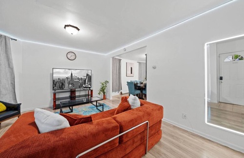 Welcome to your perfect home-away-from-home in Bayonne! This beautifully furnished 2-bedroom entire home is ideal for families, business travelers, or groups looking to explore New York City while enjoying comfort and convenience in a quieter setting. 🛏 2 Spacious Bedrooms, 5 Beds Total - 2 King Beds for a luxurious night’s sleep - Additional sleeping options to comfortably accommodate your group 🛁 Private Bathroom - Clean, modern, and fully stocked for your stay 💻 Fast & Reliable WiFi (500+ Mbps) - Perfect for remote work, streaming, or staying connected 📺 Smart TV - Kick back and relax with your favorite shows and apps 🌬 Air Conditioning - Stay cool and comfortable year-round 🚗 Free Parking - Hassle-free and convenient, especially for city visitors 🚆 Unbeatable Location - Just 1 minute to the NYC-bound Light Rail Station—be in Manhattan in no time! Whether you're here for a quick trip or an extended stay, this thoughtfully designed home offers the perfect balance of style, comfort, and access to NYC. Book now and enjoy the best of both worlds!