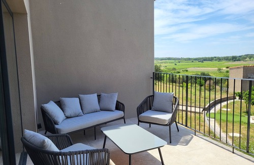 2- Quiet house and very large swimming pool with panoramic view of the vineyards is located in Tourbes. 2- Quiet house and very large swimming pool with panoramic view of the vineyards provides accommodation, featuring Air Conditioner, Balcony/Terrace, Wellness Facilities, among other amenities. This House features Air Conditioner, Balcony/Terrace, Wellness Facilities, to make your stay a comfortable one.