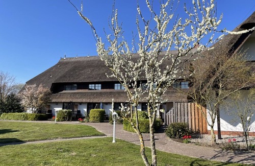 The apartment hotel Mare Balticum is idyllically and centrally located in Vorwerk, a small suburb of Sagard. Behind lies the vast expanse of the Großer Jasmunder Bodden. Appartment Hotel Mare Balticum, newly built in 1995 in traditional style with thatched roof, offers you in 24 modern apartments all amenities for a relaxing time on the island of Rügen. The apartment house Mare Balticum is located at the entrance to Sassnitz with its harbor and the chalk coast. Approximately A 10-minute drive takes you to the 8 km long pine-wooded headland Schaabe with the most beautiful beach in this region. For tourists to Scandinavia and the Baltic region Mare Balticum is particularly popular as it is located directly on the road to the ferry terminal Sassnitz-Mukran. At the house there is a playground and a barbecue for cozy hours.