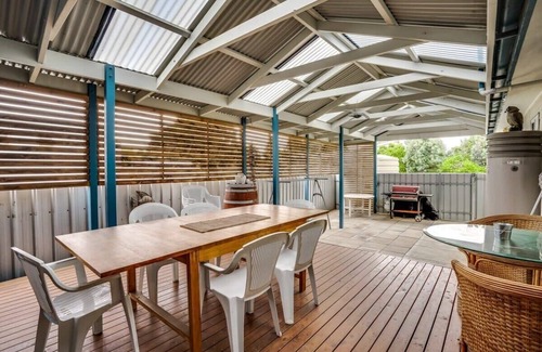 The Outdoor fully undercover area is fantastic for entertaining , sitting back and relaxing with a BBQ. The outdoor area is well equipped with wooden dining table, a cosy cane setting and plenty of extra seating available.