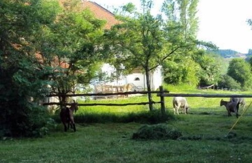 Die Ferienwohnung liegt auf einem herrlichen alten bewirtschafteten Bauernhof in Alleinlage mit viel Natur und Weide - und Hoftieren. Sie verfügt über eine große Südterrasse mit Holzboden sowie Gartenmöbel unterm schattigen Kastanienbaum. Im Erdgeschoss befindet sich der Flur mit Garderobe und Stiege zum 1. Stock, wo sich eine gemütliche Wohnstube mit alten Deckenbalken und Naturholzboden sowie Küchenzeile (Geschirrspüler, Backofen, 4-Platten-Ceranfeld, Kühlschrank, Mixer, Toaster, Eierkocher),befindet. Auch Kachelofen, TV, Esstisch, Ohrenbackensessel, Sofa und Buffet sind vorhanden. Nebenan befindet sich ein kleiner kühler Gewölbekeller mit Getränken und Platz für Vorräte. Es gibt 1 Schlafzimmer mit großem Holzbett (200x140), Schreibtisch und Schrank, sowie ein Badezimmer mit Fenster, 2 Waschbecken, WC, großer Dusche und Waschmaschine. Im 1. Stock befindet sich 1 WC mit Fenster; 1 Schlafzimmer mit Doppelbett (200x180), Schrank, Kommode. Außerdem 1 weiteres Schlafzimmer mit Bett (200x140), Schrank, Tisch und 1 Schlafzimmer mit 2 Betten (je 200x85), Schrank und Tisch.