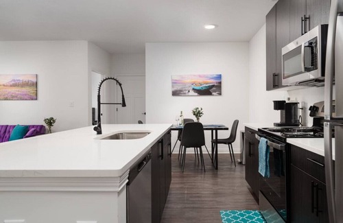 BRAND NEW 2BR 2 full bath apartment with 2 king beds. Stylish luxe corporate housing. Featuring large walk-in closets, ideal for families, business travelers, or couples. Spacious apartments with lots of closet space. dedicated desk for remote work. Step onto the private patio to relax in the fresh air. Other highlights: a full-size washer/dryer, high-speed internet, and sleek bathrooms with luxury finishes. Community has pool with sundeck, pickleball courts, 24/7 gym, pool table, & a dog park.
