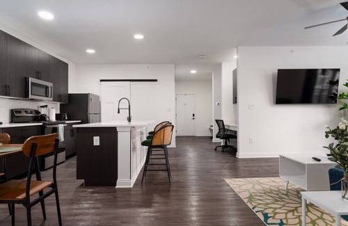 BRAND NEW 2BR 2 full bath apartment with 2 king beds. Stylish luxe corporate housing. Featuring large walk-in closets, ideal for families, business travelers, or couples. Spacious apartments with lots of closet space. dedicated desk for remote work. Step onto the private patio to relax in the fresh air. Other highlights: a full-size washer/dryer, high-speed internet, and sleek bathrooms with luxury finishes. Community has pool with sundeck, pickleball courts, 24/7 gym, pool table, & a dog park.