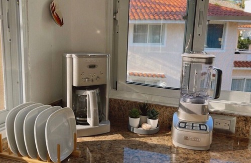 Here you will find a well-stocked kitchen, Cuisinart appliances, ample and good qulaity cookware, dishware, utensils. New gas stove and refridgerator (Feb 2024). Make your morning espresso high among the treetops, in the 3rd floor kitchen, with little birds greeting you, views that seems too good to be true.. or step out onto the 3rd floor coralina terrace and enjoy your coffee on one of our comfy chaise lounges.