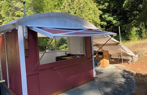 Country setting on private residential drive. Close to lakes, rivers, wine country and an hour from the pacific coast. Great for biking, hiking, fishing and the outdoor enthusiast. Enjoy the great food, beer, cannabis and wine from the Willamette Valley in the local towns of Cottage Grove and Eugene. The Yurt is on the property of the hosts home located about a half mile up a private drive called Eagle Mountain Rd that is secured with a locked gate. The outdoor shower is shared with privacy screens and attached sauna. Yurt has a coffee maker, mugs, propane heater, drinking water dispenser, drinking cups, and camp cooler. We also provide an outdoor kitchen with 4 top burner and oven plus outdoor grill. Bathing, kitchen and sauna towels provided as well as pillows and bedding. There are 2 dressers, a couch and a kitchen table with 6 chairs. Come and enjoy the peace and quite of Cottage Grove! Sip on a nice cup of coffee and listen to the sounds of nature right at the yurt or take a short drive to town and visit the historic downtown area, or swim the beautiful lakes of Cottage Grove or Dorena Reservoirs. Eugene and U of O campus/Hayward Field is a half hour north. Several winery's very close to town. Beautiful Oregon hot springs and the amazing views and adventures offered at the coast are within two hours.