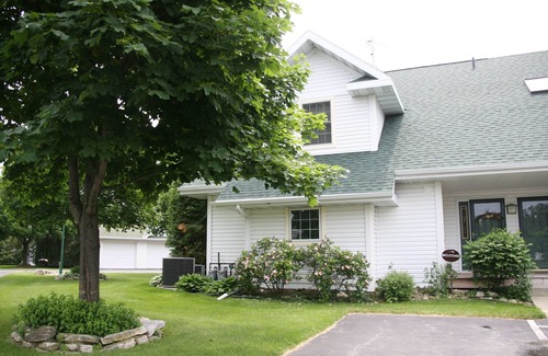 Perched above a cherry orchard on a hilltop overlooking the quaint village of Egg Harbor is the location of our condo at Eames Farm. Our lovely, charming, and spacious home has been furnished 'with love', and includes family antiques and heirlooms, mixed among special furnishings purchased with your comfort in mind. The living room comfortably seats our guests on 2 matching sofas, one a sleeper, and a lounge chair, facing the fireplace with built-in book shelves and TV. The living room is open to the dining room and kitchen giving a great space to enjoy family and friends, even when cooking, or cleaning up, in the well equipped kitchen. The cherry dining room table, which seats six, and matching buffet, add beauty and elegance to that special area facing the outdoor patio. Visit us on facebook tnc eames farm!