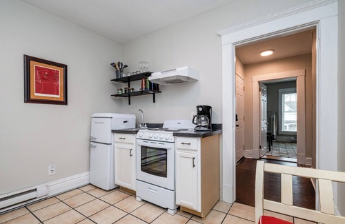 Located in the charming town of Three Oaks, we welcome you to Radio Hall. This two-bedroom, one bathroom second floor unit is a short walk to downtown Three Oaks and a ten-minute drive to the beach. One of three units in this spacious property and can be rented in conjunction with the other two to sleep 12 total.