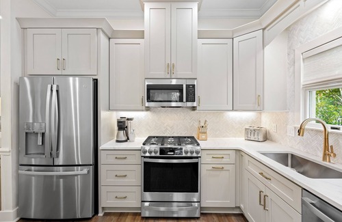 Step inside to discover the new renovations completed in May of 2025. Every inch of the home has been thoughtfully updated to provide a high-end, comfortable experience. The living room boasts new furniture perfect to spread out and relax after a long beach day. The chef's kitchen has been completely remodeled with high-end finishes, sleek cabinetry, and top-of-the-line appliances—ideal for entertaining or casual family meals.