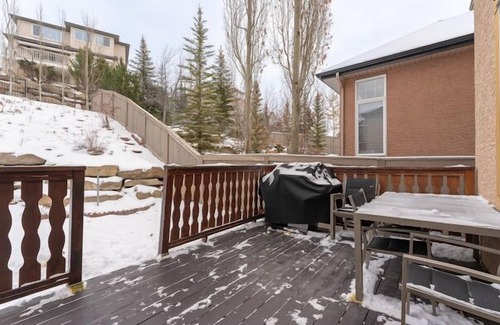 2500 sq house in springbank hill. 4 bedrooms plus den. 5 beds plus sofa bed. Curved staircase, riverstone fireplace, hardwood floor on main and second. Granite countertops on kitchen and bathrooms. Beautiful view from top. You can see Rocky Mountains from master bedroom and staircase. Recline leather couch.