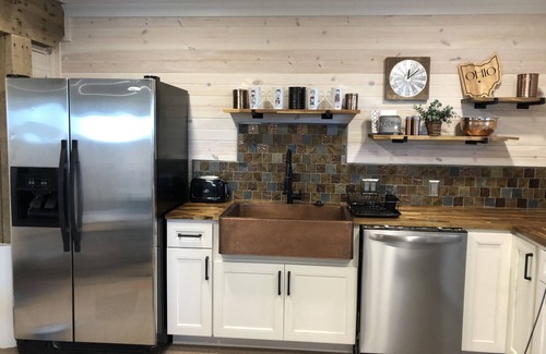 Beautiful 2 bedroom fully equipped apartment in its own unique barn space. Enjoy a king or queen bed with full bath shower, see through fireplace, washer/dryer, full kitchen, living room tv with Roku controller...Amazon prime, WiFi.