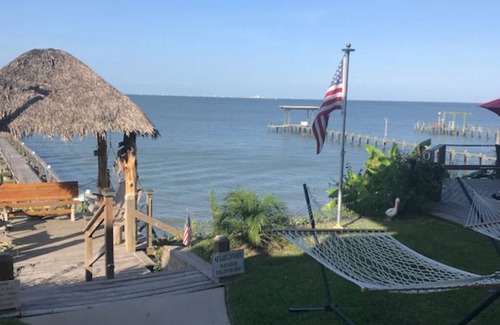 2B/1B sleeps 8 on waterfront property - 270' pier, pool, hot tubs & amenities is located in Bacliff. 2B/1B sleeps 8 on waterfront property - 270' pier, pool, hot tubs & amenities provides accommodation, featuring Pet Friendly, Ocean View, Fireplace/Heating, among other amenities. This House features Pet Friendly, Ocean View, Fireplace/Heating, to make your stay a comfortable one.