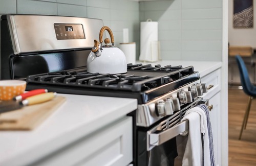 If you're a cooking enthusiast, the kitchen is fully equipped with new stainless steel appliances, quartz countertops, a coffee maker, blender, air fryer, rice maker, baking dishes, and more to make meal preparation a breeze during your stay.