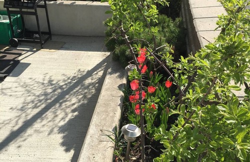 Parking at the door, stainless steel appliances, outdoor BBQ (propane tank left behind by previous visitors, exchange for full tanks available nearby), laundry in suite, common garbage and recycling bins outside with weekly pickup.