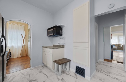 Built as a single-family home, converted to a duplex in the 1960s. While soundproofing has been added, some noise may transfer—please keep quiet hours after 10 PM.