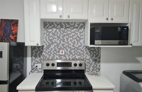 This refreshed 2-bedroom townhouse, located in an older, non-gated Barbican community in Kingston, offers a retro-contemporary feel. Ideal for family or group stays, it's walking distance from KFC and the US Embassy, with a short drive to Sovereign Centre, Hope Zoo, UWI/UTECH, and other attractions. Enjoy WiFi, AC, water heater, free parking, and streaming on Netflix, Samsung TV, and Disney Plus.