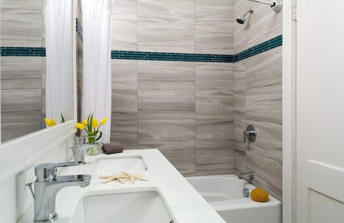 Everybody loves vacationing just two blocks from Thames St and Bannister's and Bowen's wharves. Totally comfortable and move-in ready at 98 Mill Street, the two bedrooms each have a King-sized bed and share a bath with tub / shower and double sink vanity. A full-sized kitchen with gas stove, dining area, and living room with flat-screen cable TV and gas fireplace make this a perfect getaway. It also includes air-conditioning, free parking, free wi-fi, and a shared patio.