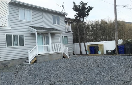 Summer weekly rental Saturday to Saturday. We encourage you to inquire before booking. Cute house (right half of duplex) on the ocean side of Route 1. Off season two night minimum. Two bedrooms, two baths, large deck, washer-dryer. The house is two levels with a bedroom/bathroom and deck upstairs, a bedroom/bathroom, living room and kitchen downstairs Kitchen is complete with oven, stove, full sized refrigerator and dishwasher. Unit has two reserved parking spaces next to the house. Upstairs bedroom has a queen bed and a twin bed. Downstairs bedroom has bunks with a full bed and a twin bed. Wireless Internet and TV is included. TVs are in the upstairs bedroom and in the living room. We ask that you bring your own sheets and towels. This home is central in Dewey, near the Starboard, and steps from the beach. House is on a quiet corner of New Orleans street and offers much more space and privacy than any standard hotel or condo. Dogs are welcomed - requires an additional $50 non-refundable pet cleaning fee. Sorry no Senior Week rentals.
