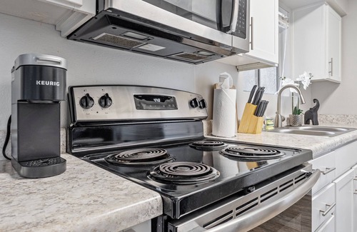- You can whip up meals in the fully equipped kitchen with oven, stove, microwave, fridge, kettle, K-Cup coffee maker, coffees, teas, etc