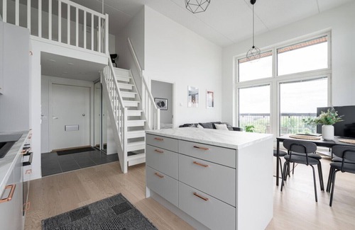 The apartment has two separate bedrooms, a loft `bedroom` and a living room with an open-concept kitchen. There is also a private bathroom with sauna for you to use as well as a large balcony that goes on two sides on the apartment. The apartment is well equipped to suit your needs and you only need to have your personal belongings and hygiene products with you when staying with us.
