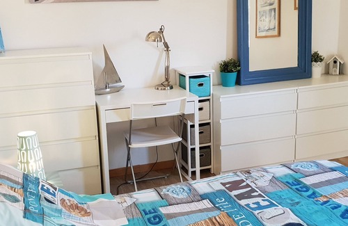 This one is fully equipped with washing machine, dryer, fridge freezer, oven, microwave, coffee maker, TV TNT channels, WIFI connection and bed linen provided (no dishwasher)