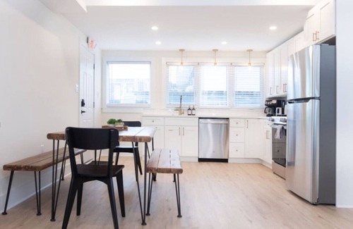 Stunning 3BR condo just 200 feet from the beach & boardwalk! Fully gutted & remodeled in 2025: brand-new kitchen w/ quartz counters, modern appliances, luxury tiled bathroom, & designer furniture. Sleeps 7 (up to 9 w/ 2 fold-out sofas). Smart TVs, Roku, WiFi, smart lock. 2nd-floor unit in 3-story building. Parking permit for street parking in Wildwood. All linens provided. Book w/ other units in building for larger groups!